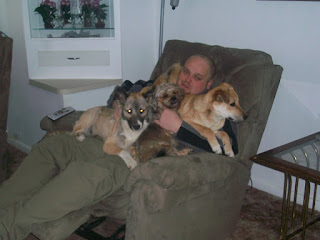 Here are some cute pictures of the puppies, and Eb that I thought you might enjoy!This is Wolf, it looks like he is laughing!